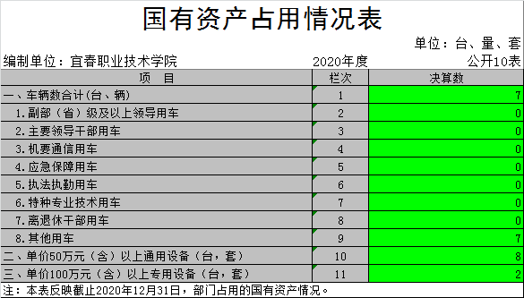 截止2020年12月31日,本部门国有资产占用情况见公开10表《国有资产占用情况表》。其中车辆中的其他用车主要是一般公务用车。