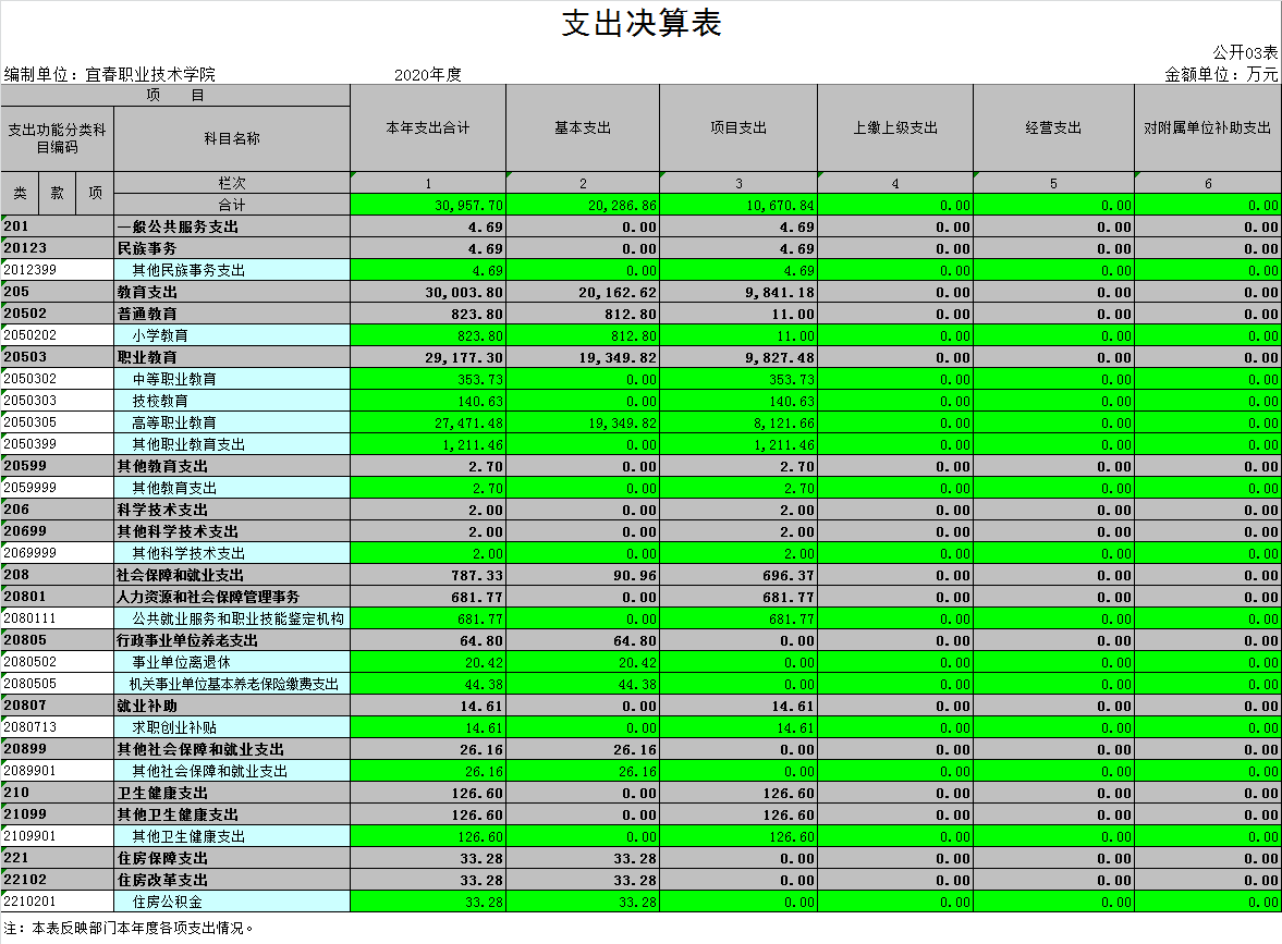 本部门2020年度支出总计30957.7万元,其中本年支出合计30957.7万元,较2019年减少9730.1万元,下降23.91%,主要原因是:新校区政府性基金项目减少;年末结转和结余7649.06万元,较2019年增加5026.29万元,增长191.64%,主要原因是:当年一般公共预算财政拨款项目暂未完工,资金留待继续按原用途使用。