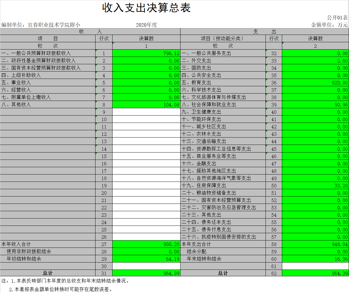 本单位2020年度收入总计964.40万元,其中年初结转和结余64.18万元,较2019年减少25.27万元,下降29%;本年收入合计964.40万元,较2019年减少17.65万元,下降2 %,主要原因是:化解大班额,学生人数减少。
