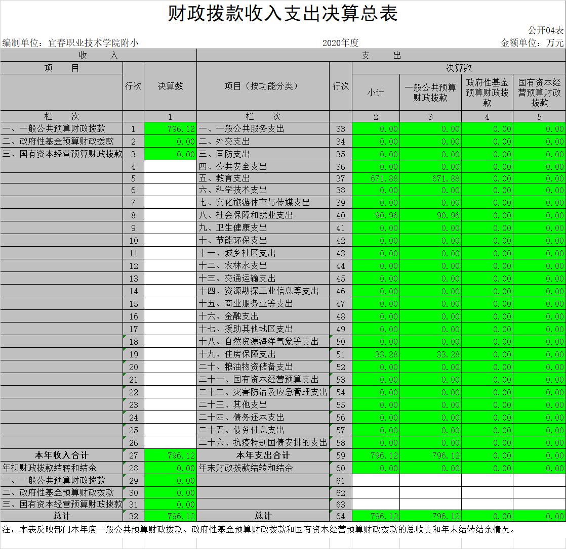 本单位2020年度财政拨款本年支出年初预算数796.12万元,决算数为796.12万元,完成年初预算的100%。其中: