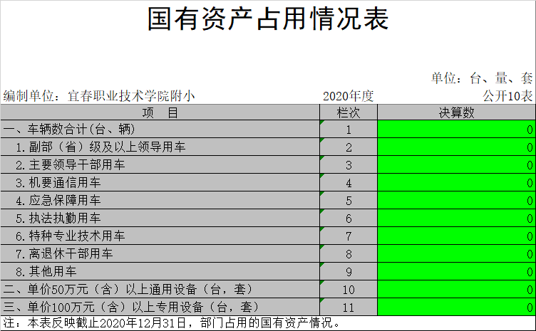 截止2020年12月31日,本单位国有资产占用情况见公开10表《国有资产占用情况表》。其中车辆中的其他用车为无。