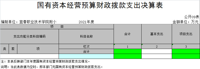 九、国有资本经营预算财政拨款支出决算表