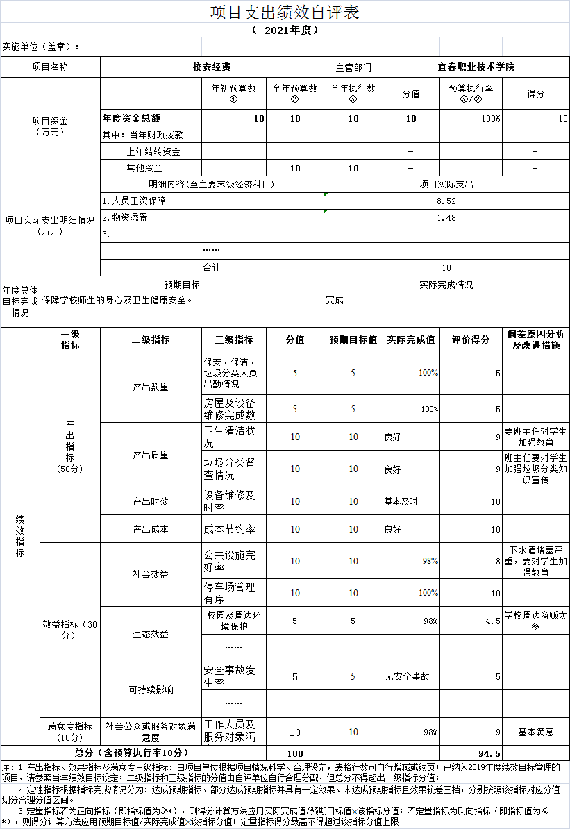 从评价情况来看,自评得分94.5分。