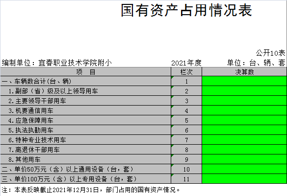 截止2021年12月31日,本单位(单位)国有资产占用情况见公开10表《国有资产占用情况表》。其中无车辆中的其他用车。